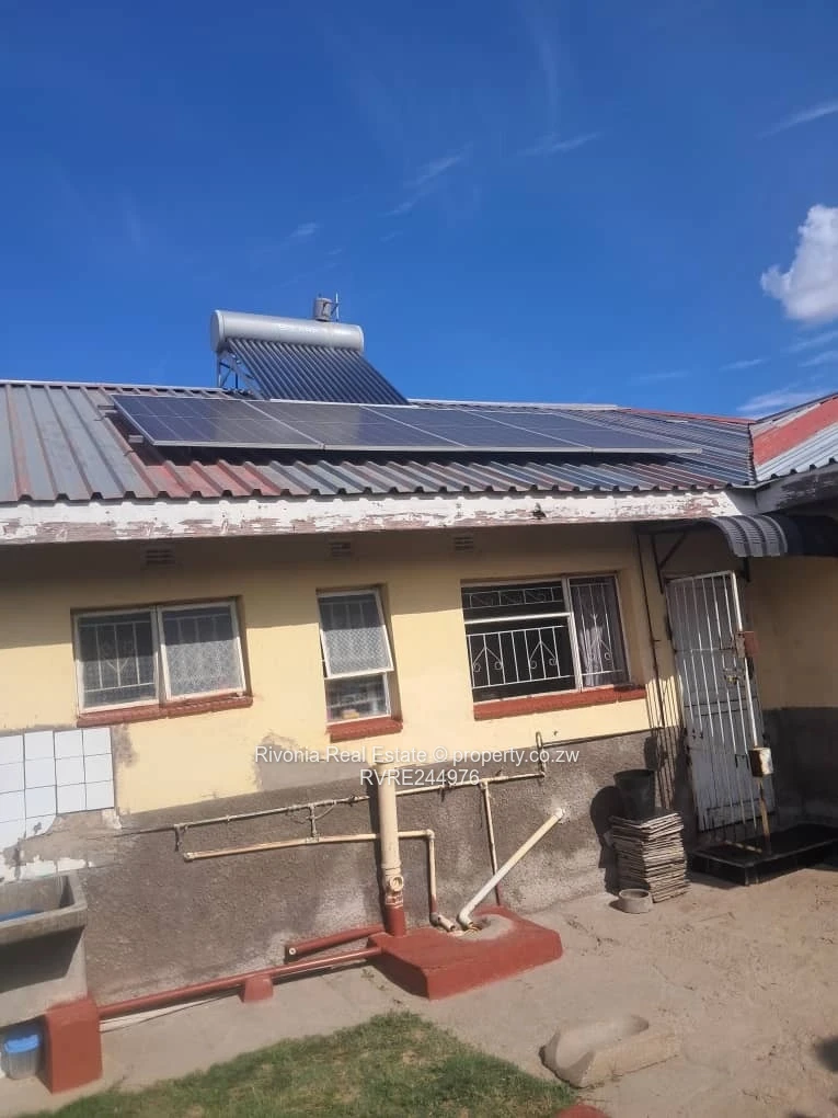 Practical comforts include municipal water, a sewer system, reliable ZESA support aided by rooftop solar panels and a solar geyser visible on the roof (see roof photo), internet connection ready, and 24hr security with access control for peace of mind. The front elevation shows strong boundary walls and a secure gated entrance (see front photo). With good finishes, practical layout and secure, serviced neighbourhood amenities, this home is move-in ready and perfect for families or investors seeking steady value in Harare South. Contact us to arrange a viewing.