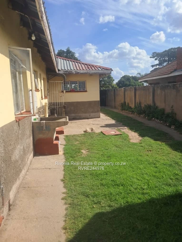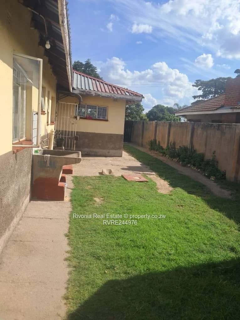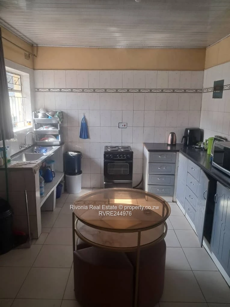 Charming 4-bedroom, 2-bath home for sale in Mainway Meadows, Harare South — 200 m² of comfortable living on a 540 m² walled stand. The main en-suite and three additional bedrooms are tiled and bright, ideal for family living. The property features a fitted kitchen with ample cabinetry and a breakfast island (see kitchen photo), plus a second neatly tiled cooking area with space for appliances (see alternate kitchen shot). Outside you’ll find a private walled garden with lawn and a handy wash area (see backyard photo), a secure garage and verandah for relaxed evenings.