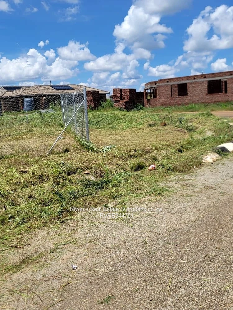 Prime development opportunity in Glaudina, Harare West — 300 m² stand ready for immediate purchase. This level corner parcel sits on a paved road with clearly marked kerbstones and good street visibility. The plot is partially delineated by a chain-link fence and is surrounded by emerging residential builds and red-brick shell houses, offering a quiet, up-and-coming neighbourhood feel. Photos show well-maintained grass, a gentle, even gradient ideal for single-storey or two-storey plans, and wide sky vistas with excellent natural light. With neighbouring homes already under construction, this lot is perfect for a starter house, rental unit, or small family home close to developing amenities. Secure your slice of Glaudina today — prime value for builders and owner-occupiers who want a straightforward, build-ready plot in Harare West. Contact us to arrange a viewing and discuss terms.